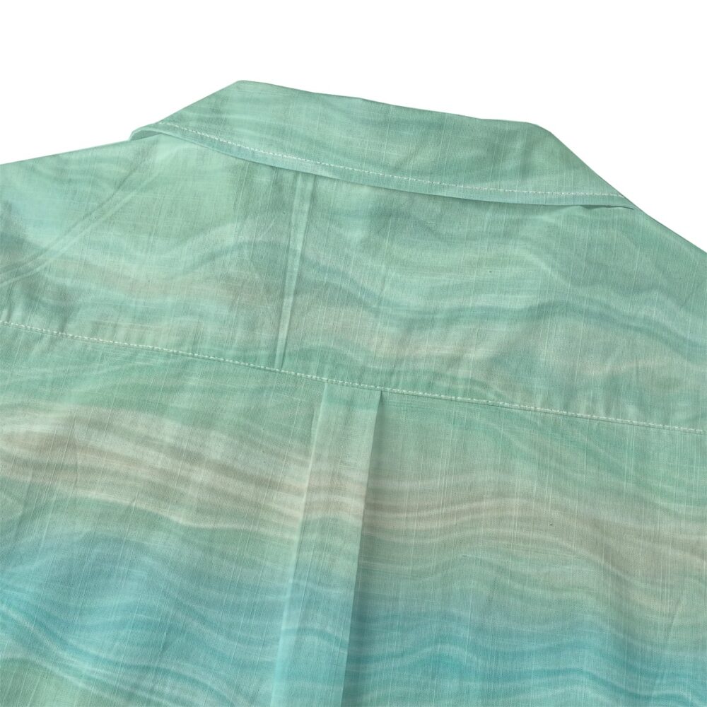 Soft lagoon hues blend seamlessly into each other, forming a refreshing pattern inspired by clear tropical waters.