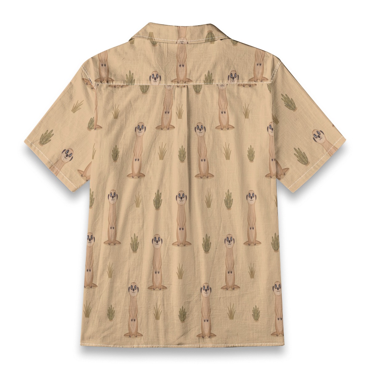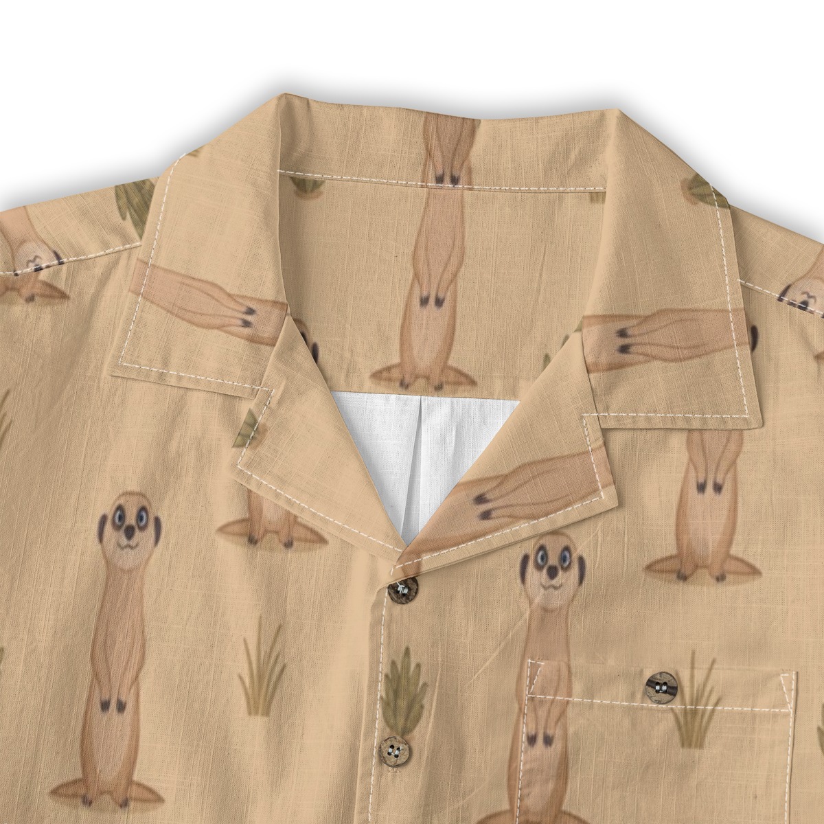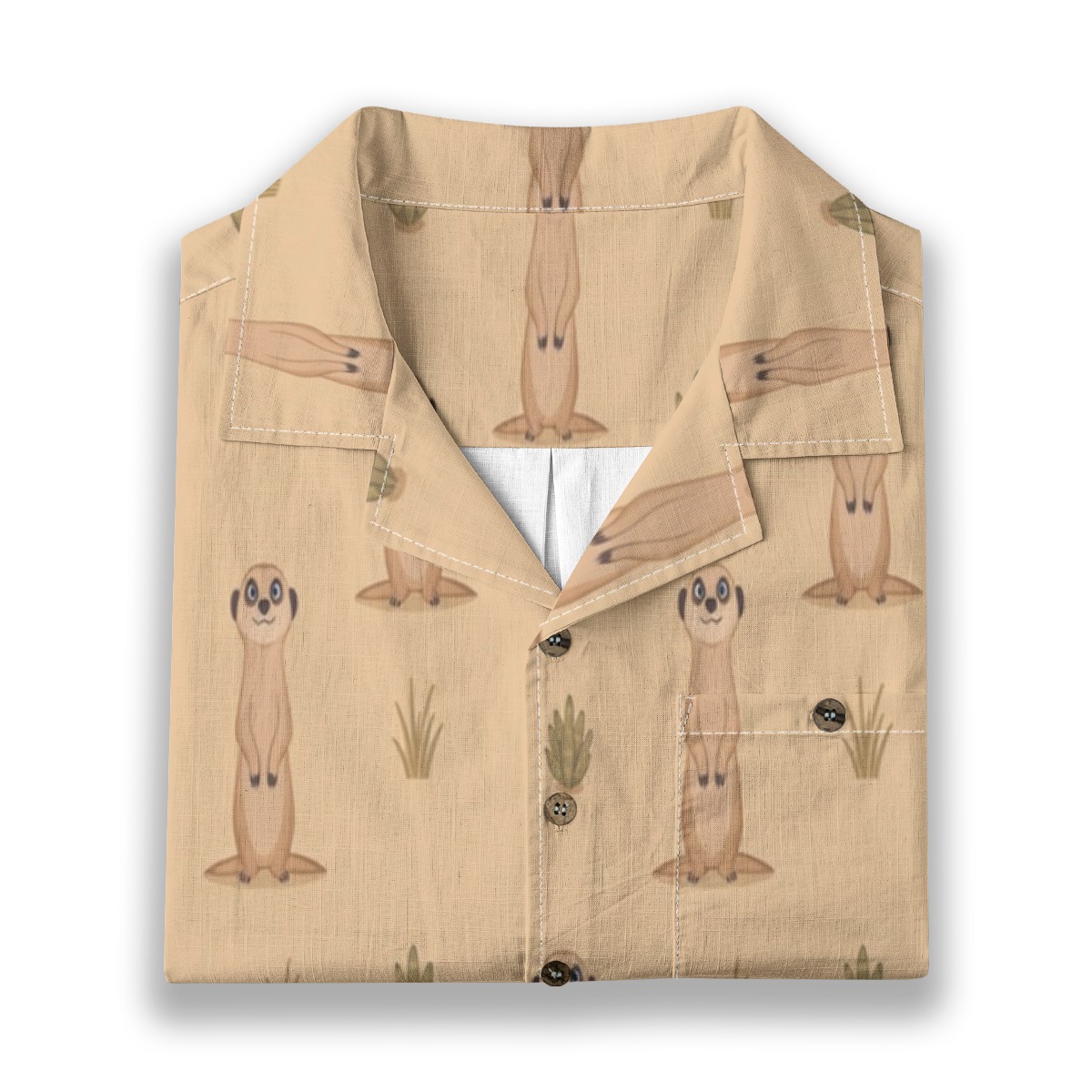 Charming meerkats stand alert in a breezy desert-inspired pattern filled with warmth. Soft sandy tones and gentle browns create a sunlit atmosphere. The airy spacing keeps the design light and playful, capturing a relaxed, sun-drenched mood.