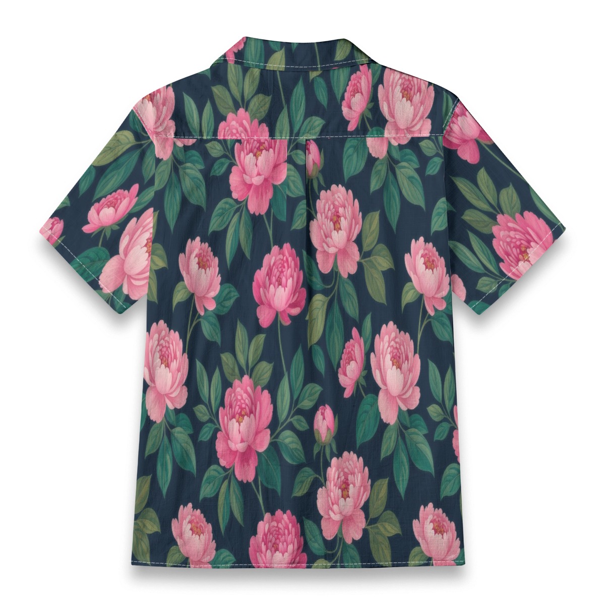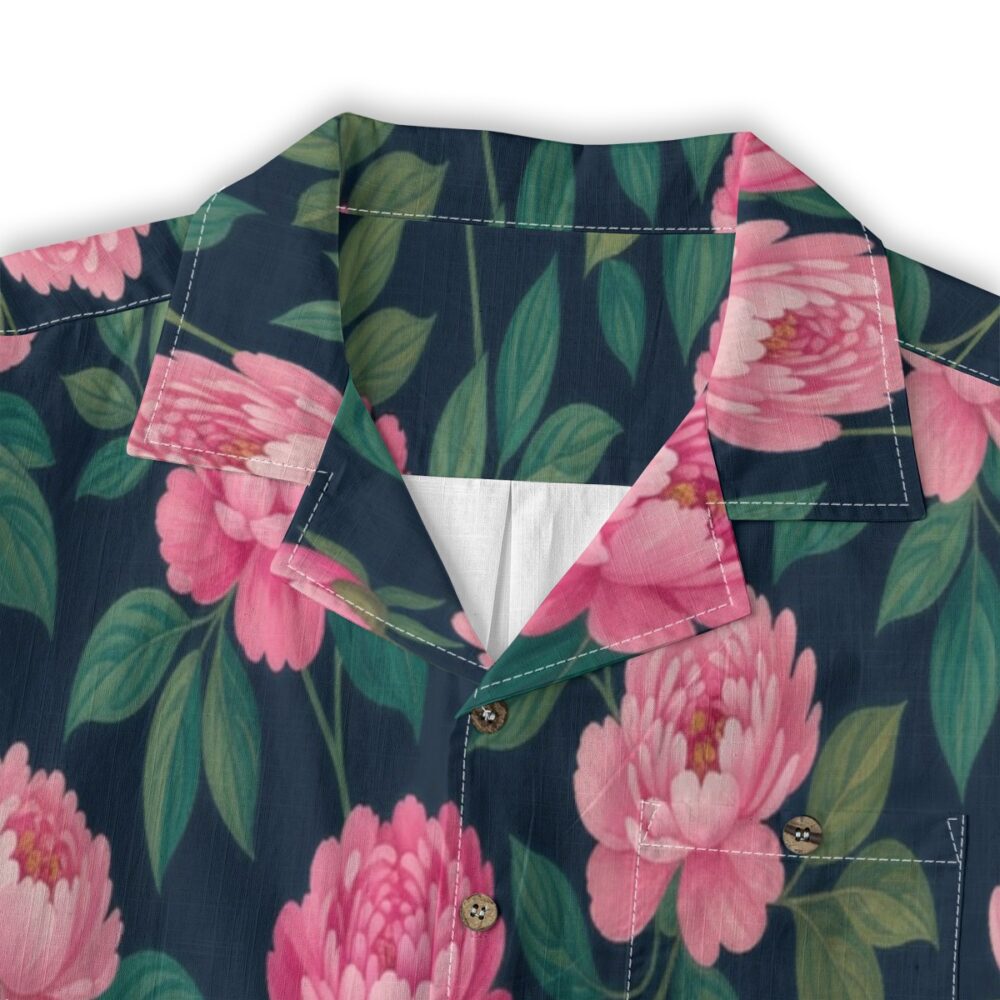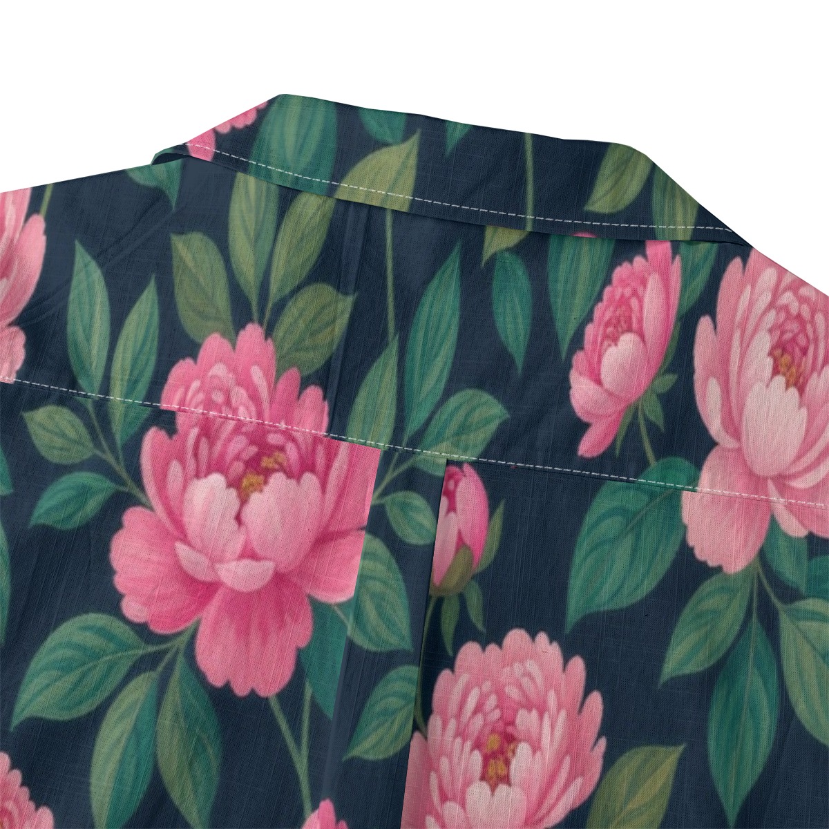 Lush peonies bloom across a rich navy base, creating a bold yet refined pattern. Soft pink petals contrast beautifully, bringing depth and elegance to the design.