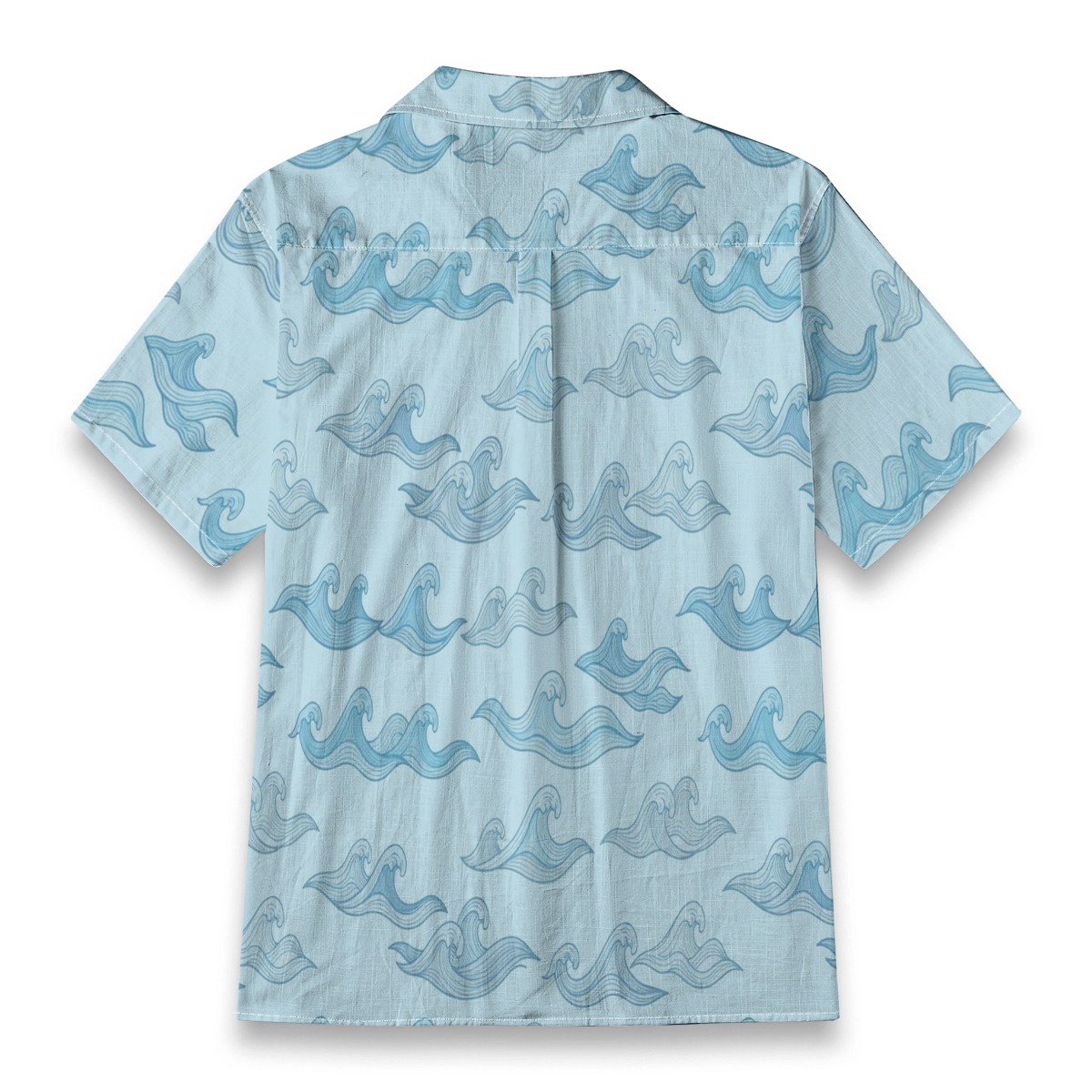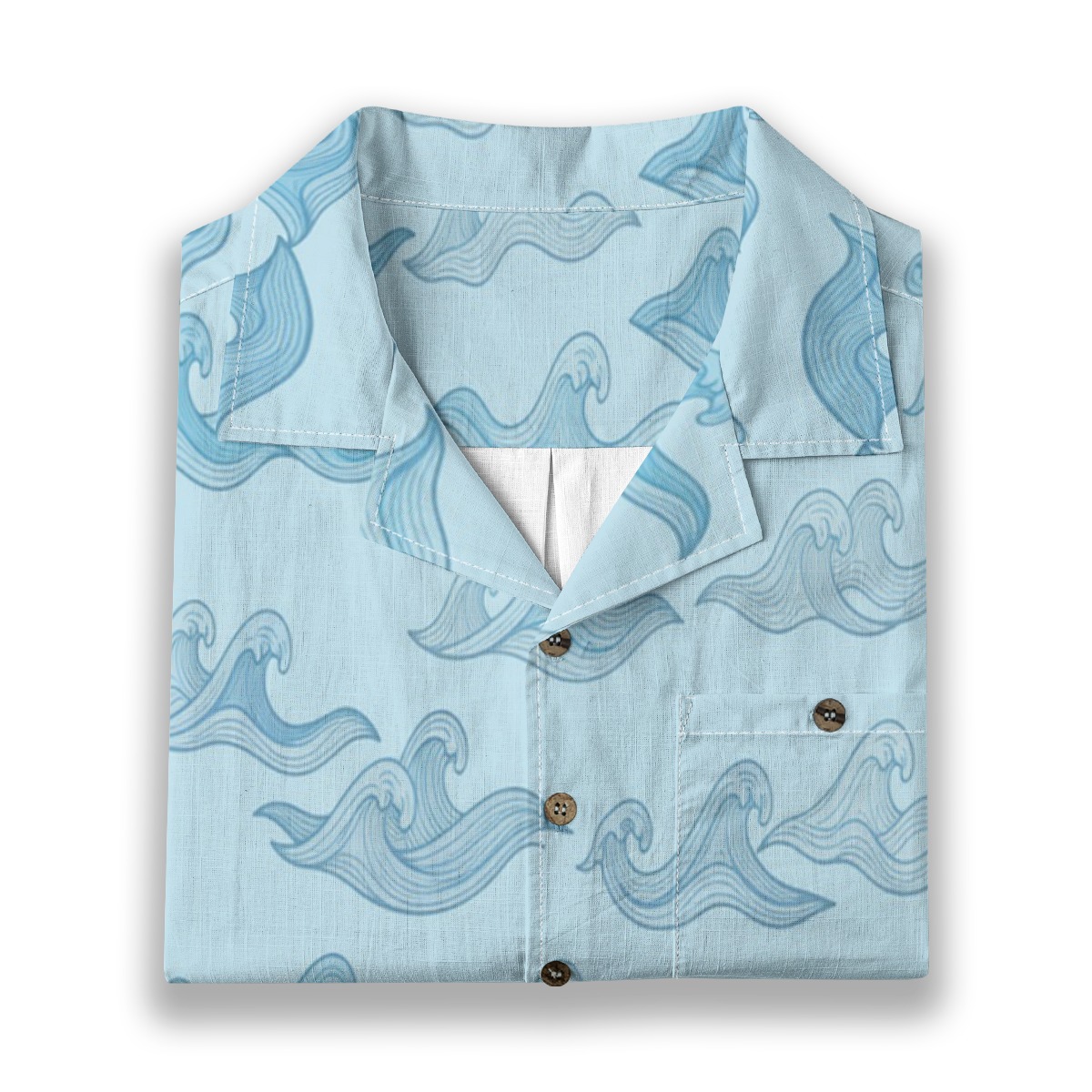 Subtle wave textures spread across a soft blue base, forming a calm and understated pattern. The gentle tones create a soothing atmosphere, while the evenly spaced layout keeps the design cohesive.