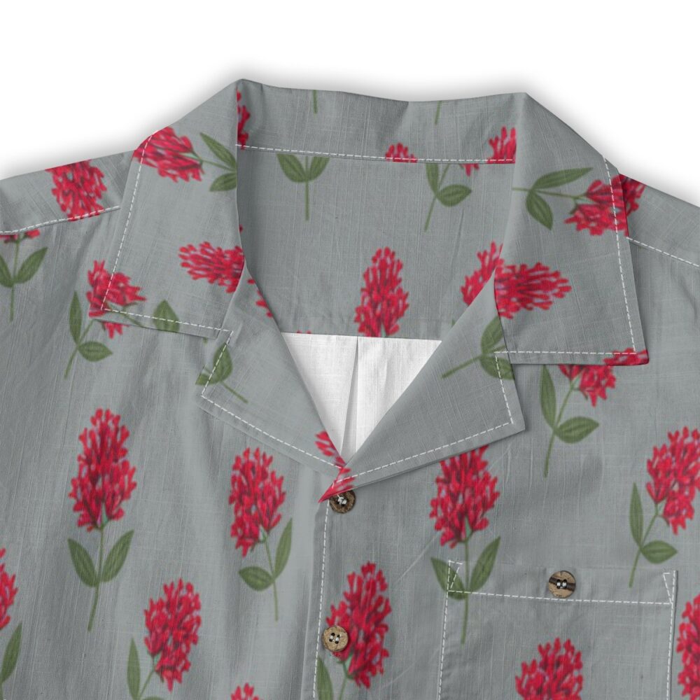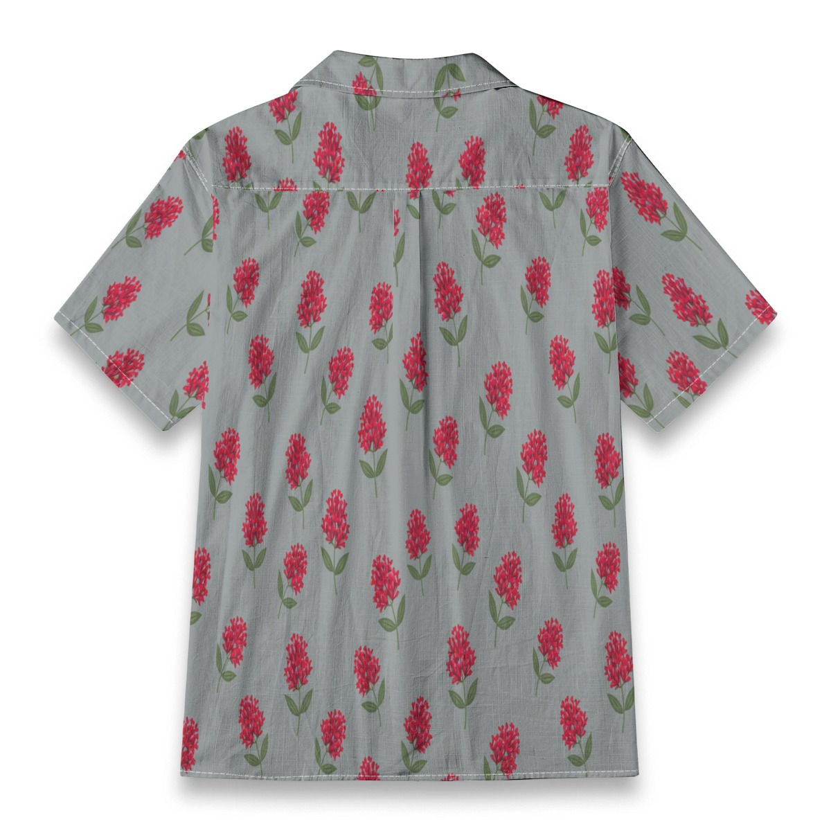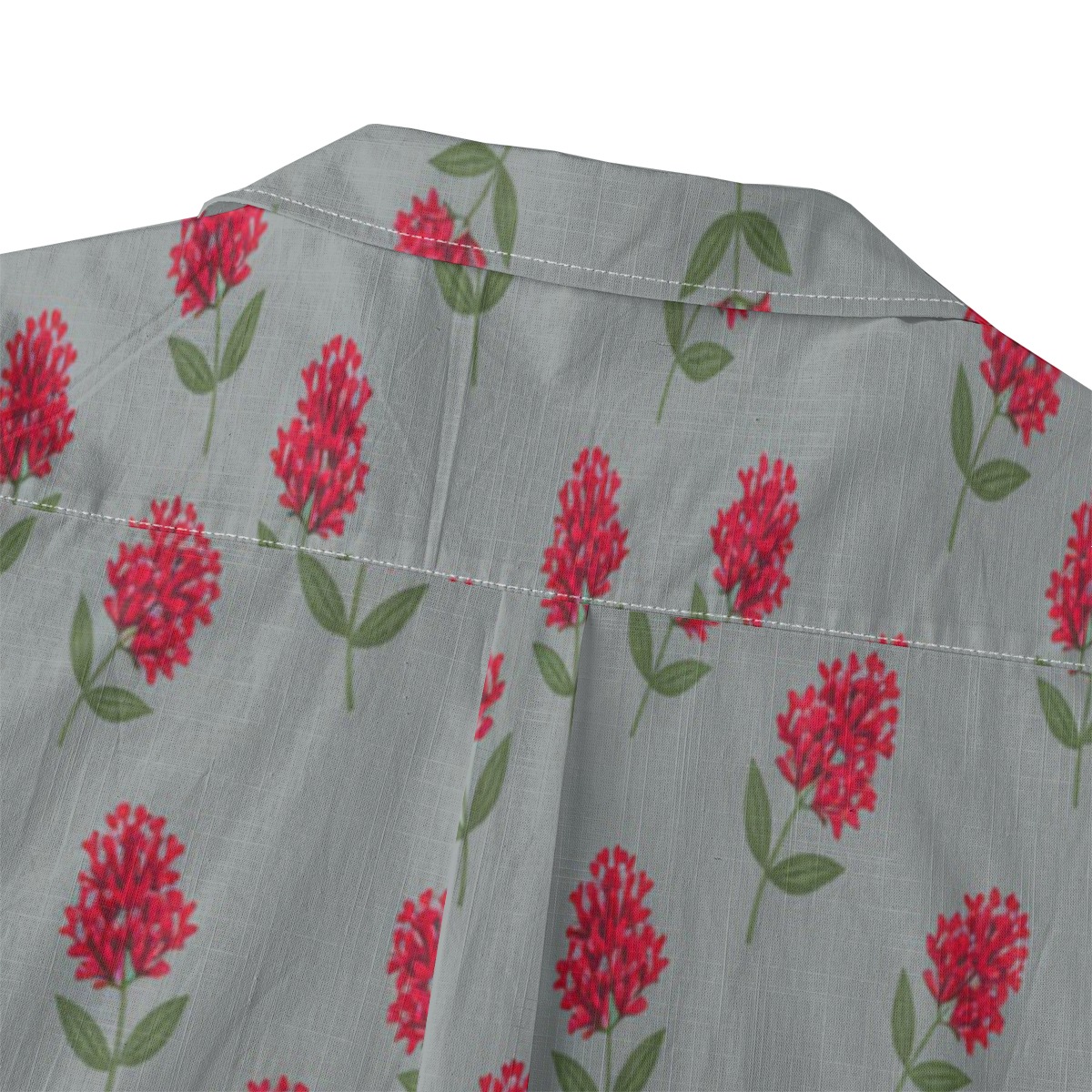 Vivid red valerian blooms stand out against a soft gray base, creating a striking yet balanced pattern. The green leaves add depth, while the evenly spaced layout keeps the design cohesive and lively.