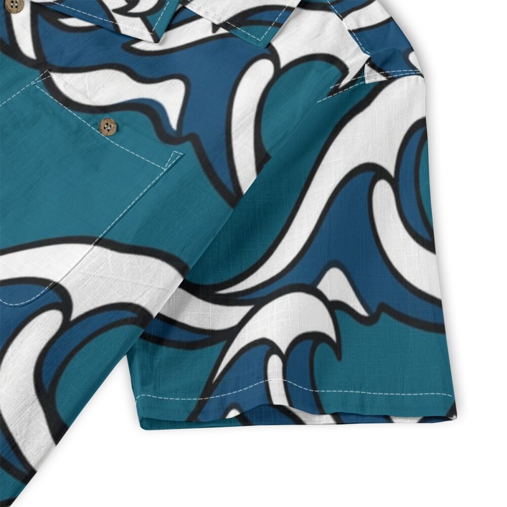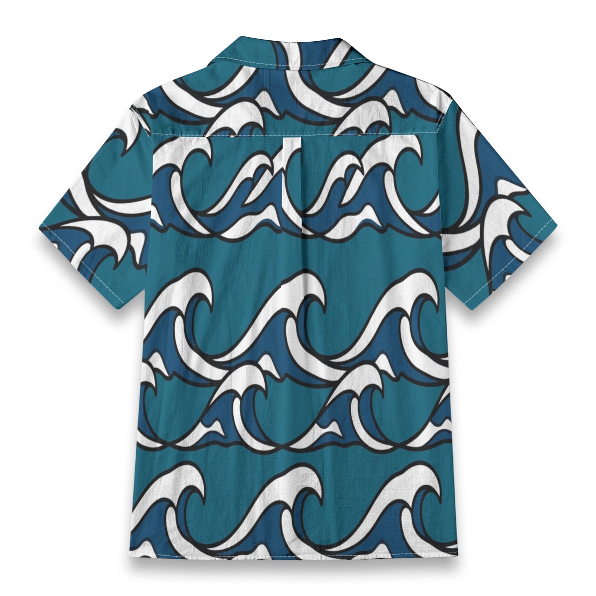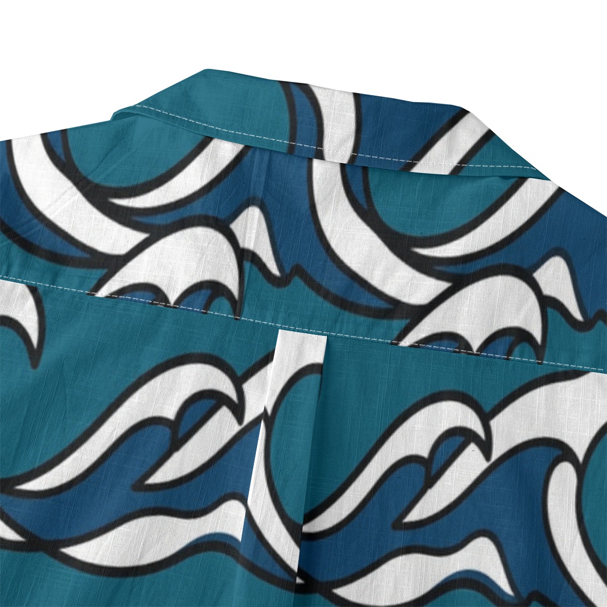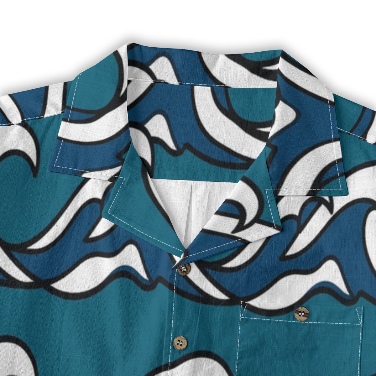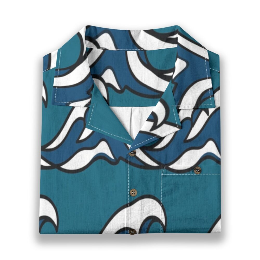 Bold tide waves roll across a deep teal canvas, creating a rhythmic and energetic ocean-inspired pattern.
